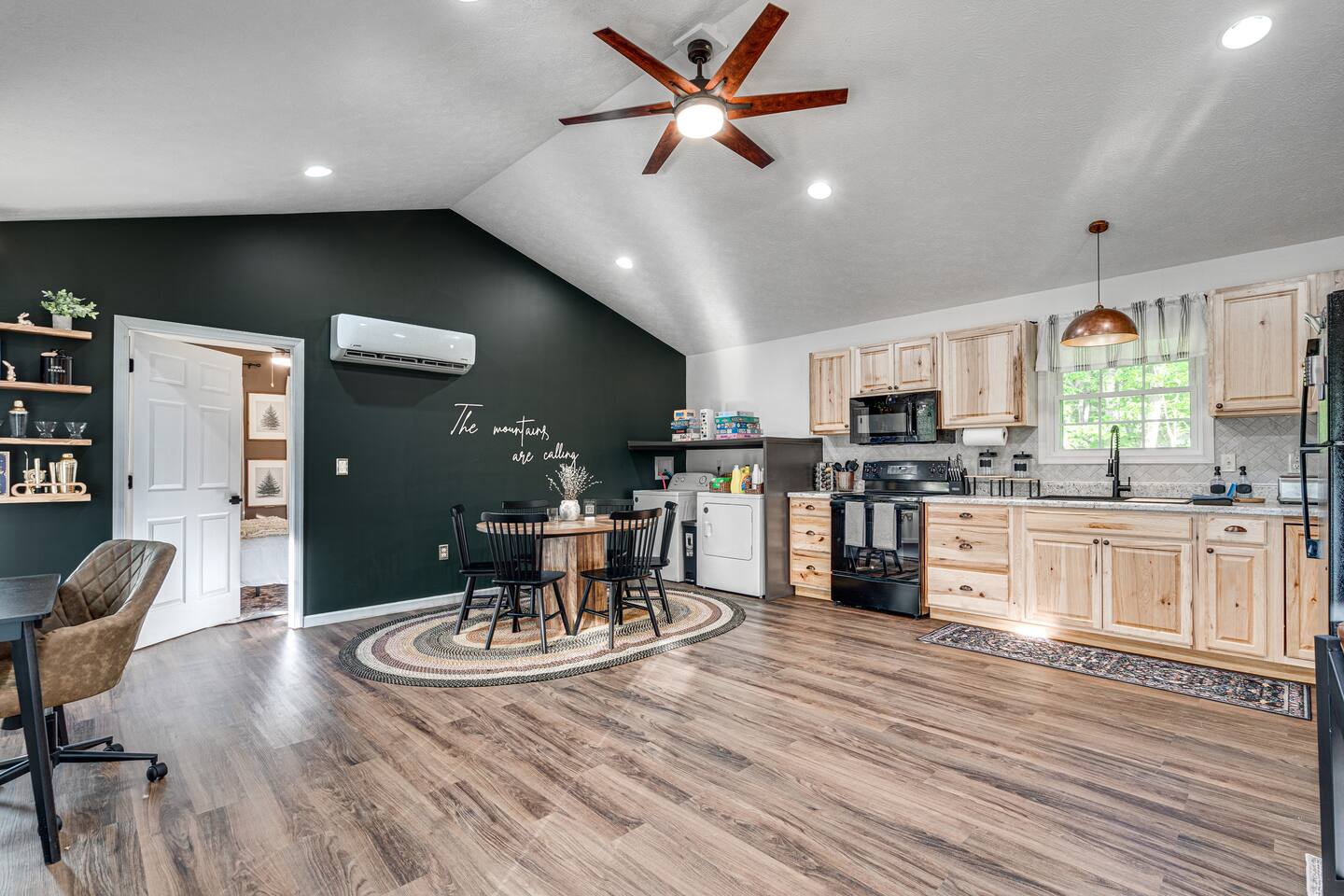 ★ LOCATION ★ - The cabin is situated at the base of a mountain on one 1 acre of flat land in a private & quiet neighborhood - tucked in a cul de sac and 5 min walking distance (.5 mile) to Shenandoah River with guest River River access - borders Shenandoah National Park in the Appalachian/Blue Ridge Mountains. ★ LOCATION & DISTANCES ★ 90 min from Richmond | 2 hrs from DC | 3 hrs from VA Beach | 4 hrs from Pittsburgh ★ NEARBY ATTRACTIONS ★ • River access: 5 min • Luray Caverns: 24 min • Skyline Drive: 25 min • Massanutten Resort: 26 min • Shenandoah National Park: 30-37 min ★ KEY FEATURES ★ • Modern cabin with smart mini-split HVAC • 5G WiFi • Fully equipped kitchen • playground, fire pit & BBQ • TVs in all rooms • Kid/pet-friendly amenities Cabin is located at base of mountain. 4WD/AWD not needed although recommended if snowing.